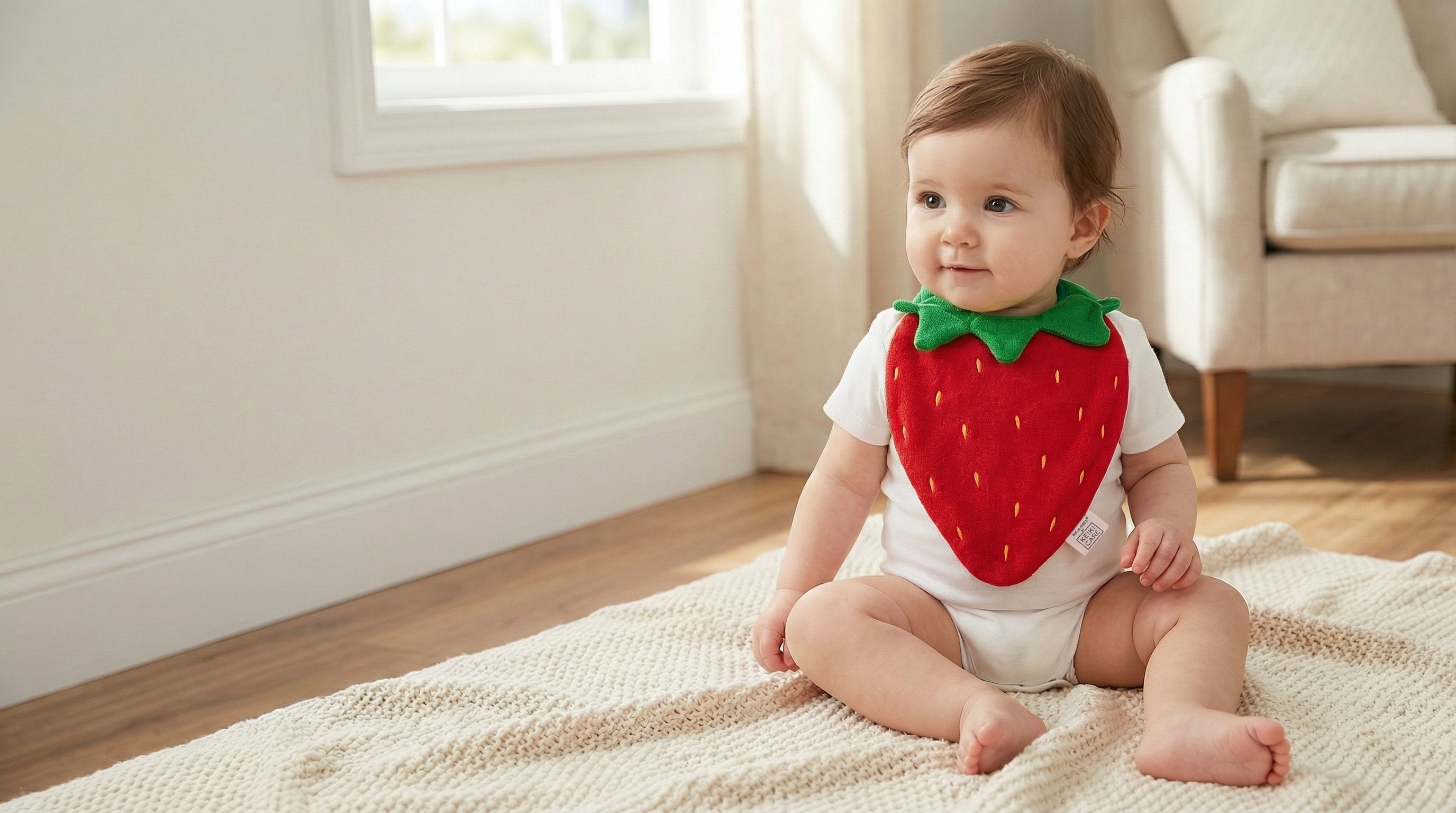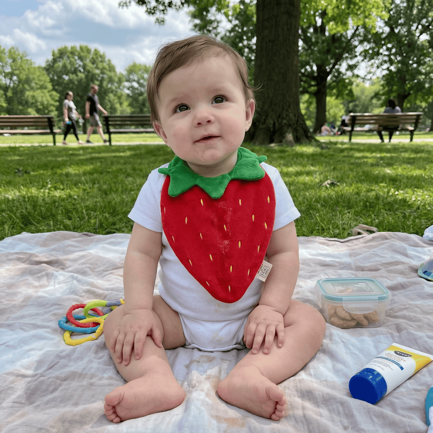 "I didn’t think a bib could be this cute. We get stopped everywhere asking where we got the strawberry one. Instant outfit upgrade!"